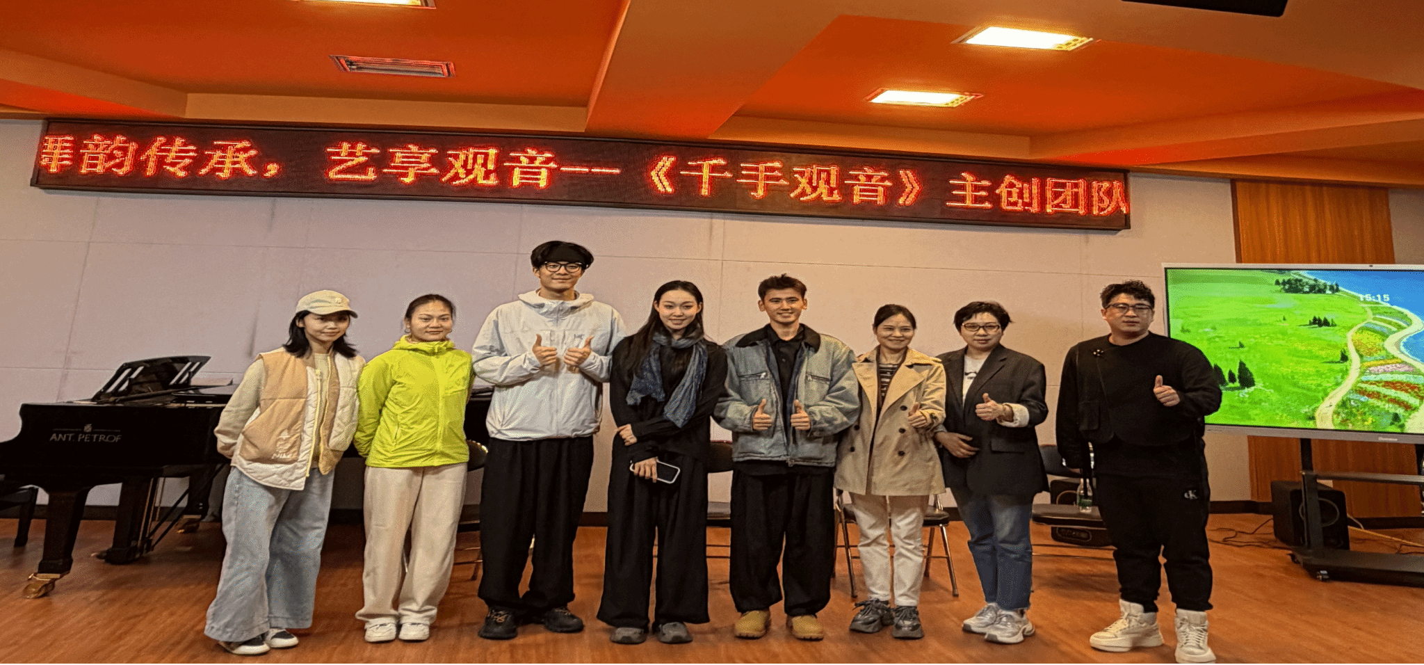 11月17日下午,“舞韵传承,艺享观音——《千手观音》主创团队进校园艺术交流会”在我院501汇报厅顺利举行。主创团队介绍了著名导演张继钢历时七年创作的舞剧《千手观音》的艺术理念与创作历程。该剧以千手观音传说为蓝本,通过“三公主寻莲救父”的动人情节,传递“真、善、美”的永恒主题,在场师生对该作品的文化内涵与艺术特色有了更加深入的理解。