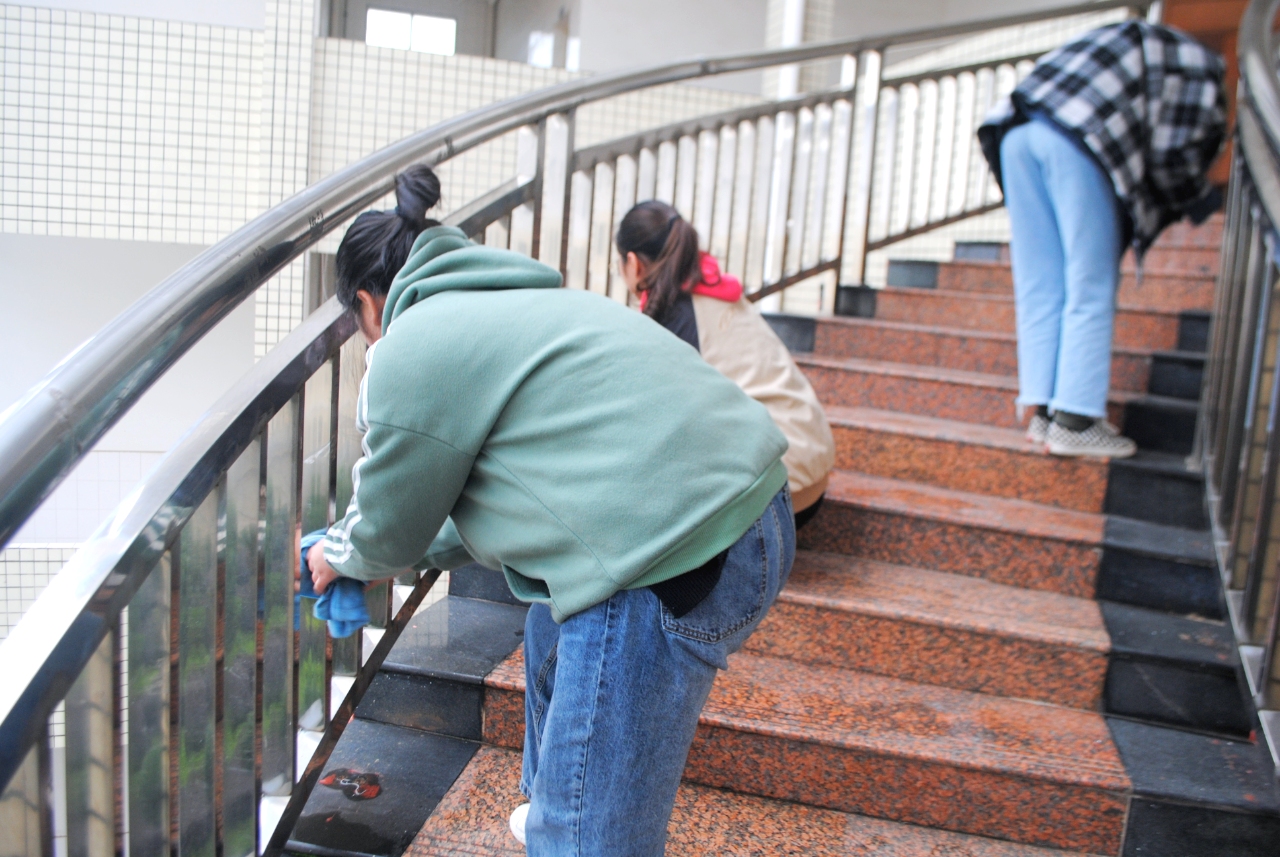 高高的窗户和天花板被同学们打扫的一尘不染,大家分工合作、有条不絮,撸起袖子就干起来!