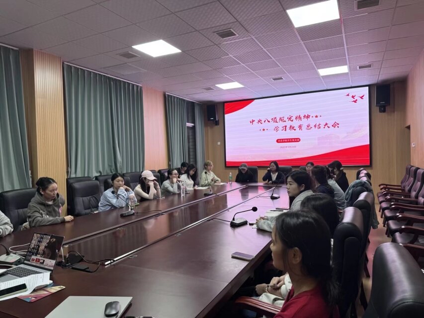 为深入贯彻中央八项规定精神学习教育,推动作风建设与艺术育人同频共振,9月24日,我院在音乐楼406会议室组织全体学生党员开展贯彻中央八项规定精神学习教育总结会,学生党支部书记蒋思源出席并作学习总结。