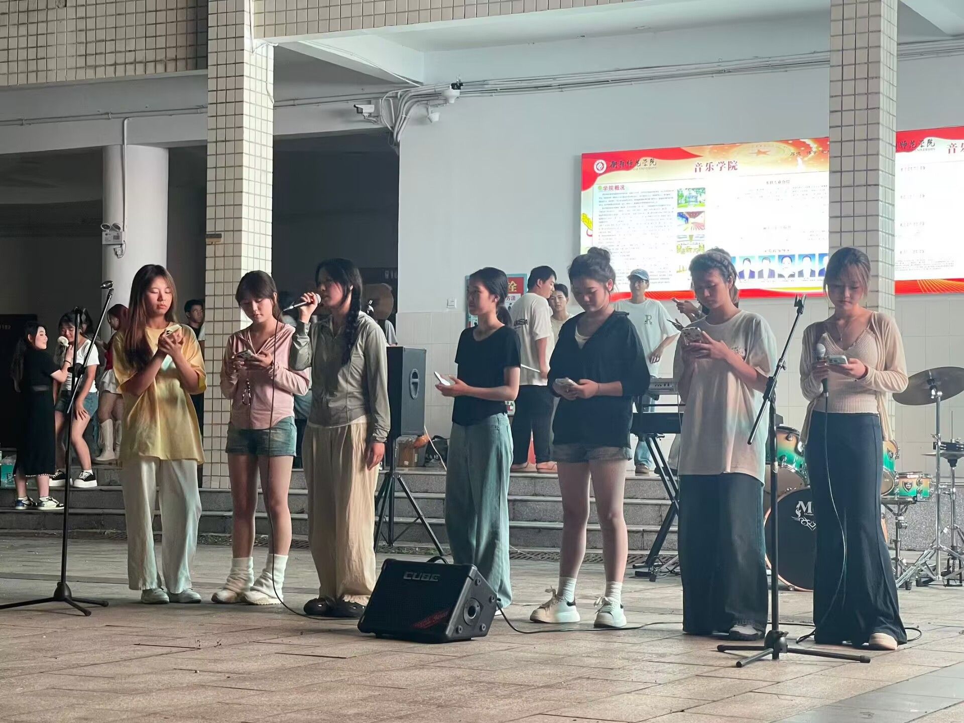 同学们积极参与舞台展演,展现出良好的参与热情与精神面貌。他们结合自身特长,通过演唱、乐器伴奏等形式呈现曲目,表演过程专注投入,情感表达真挚。现场观众反响热烈,同学们的展演不仅完成了展示环节,更以音乐为载体传递愉悦氛围,为活动现场增添了活力